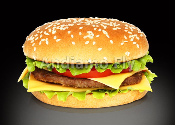 Steak haché, cheddar, tomates fraîches, salade.